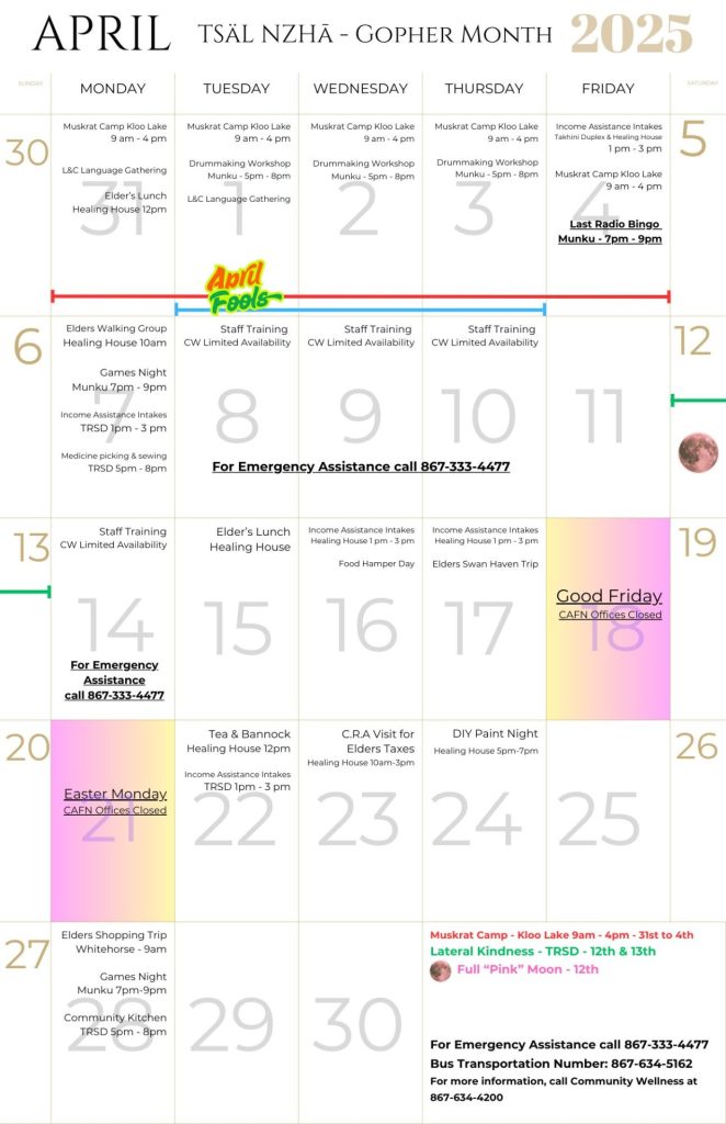CAFN Community Wellness Calendar for April 2025