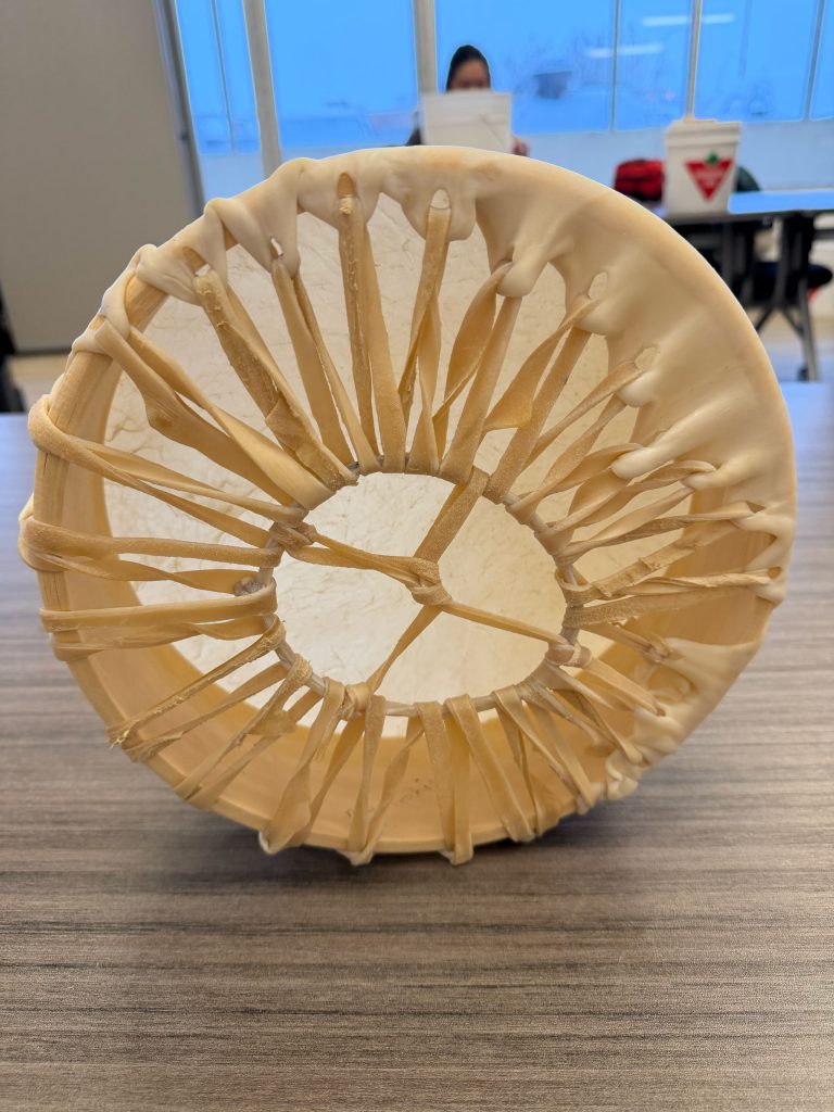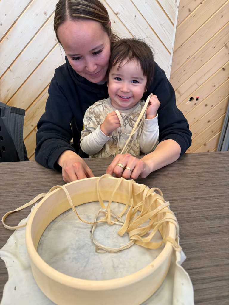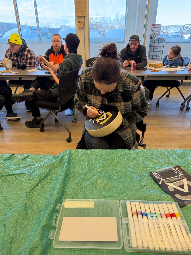 In Whitehorse, YFNED and CAFN Education ESWs hosted a mini drum-making workshop with Bradley Joe in preparation for the upcoming Yukon Native Hockey Tournament. Youth created their own drums to help cheer on the CAFN Storm teams at the tournament.