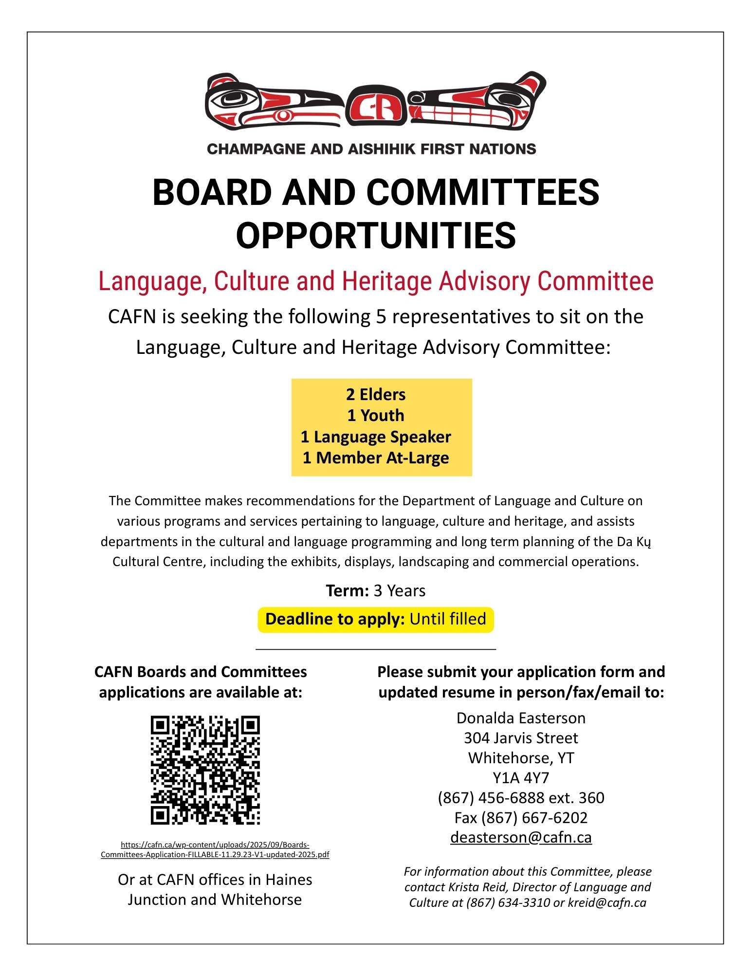 -20°CChampagne and Aishihik First Nations appoints and nominates Citizens to many boards and committees, including internal, local, and territorial bodies. All play an important role in providing advice or making decisions on issues affecting our self-government.